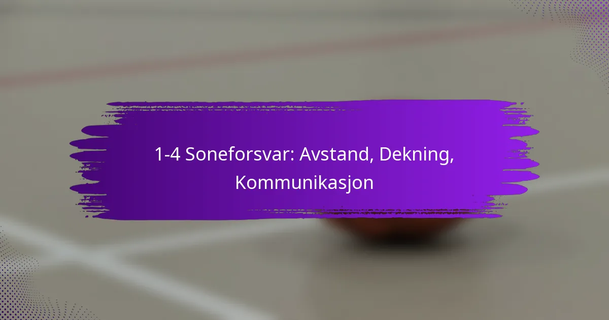 1-4 soneforsvaret er en basketballstrategi som plasserer én spiller nær kurven og fire spillere spredt over banen, noe som skaper en sterk defensiv tilstedeværelse i maleren samtidig som den effektivt dekker perimeteren. Riktig avstand er avgjørende for å opprettholde dekning og forhindre offensiv penetrasjon, noe som gjør at forsvarsspillere kan vokte sine områder samtidig som de forblir tilpasningsdyktige. Effektiv kommunikasjon mellom spillerne forbedrer dekningen, noe som gjør at laget kan reagere dynamisk på motstanderens bevegelser og strategier.